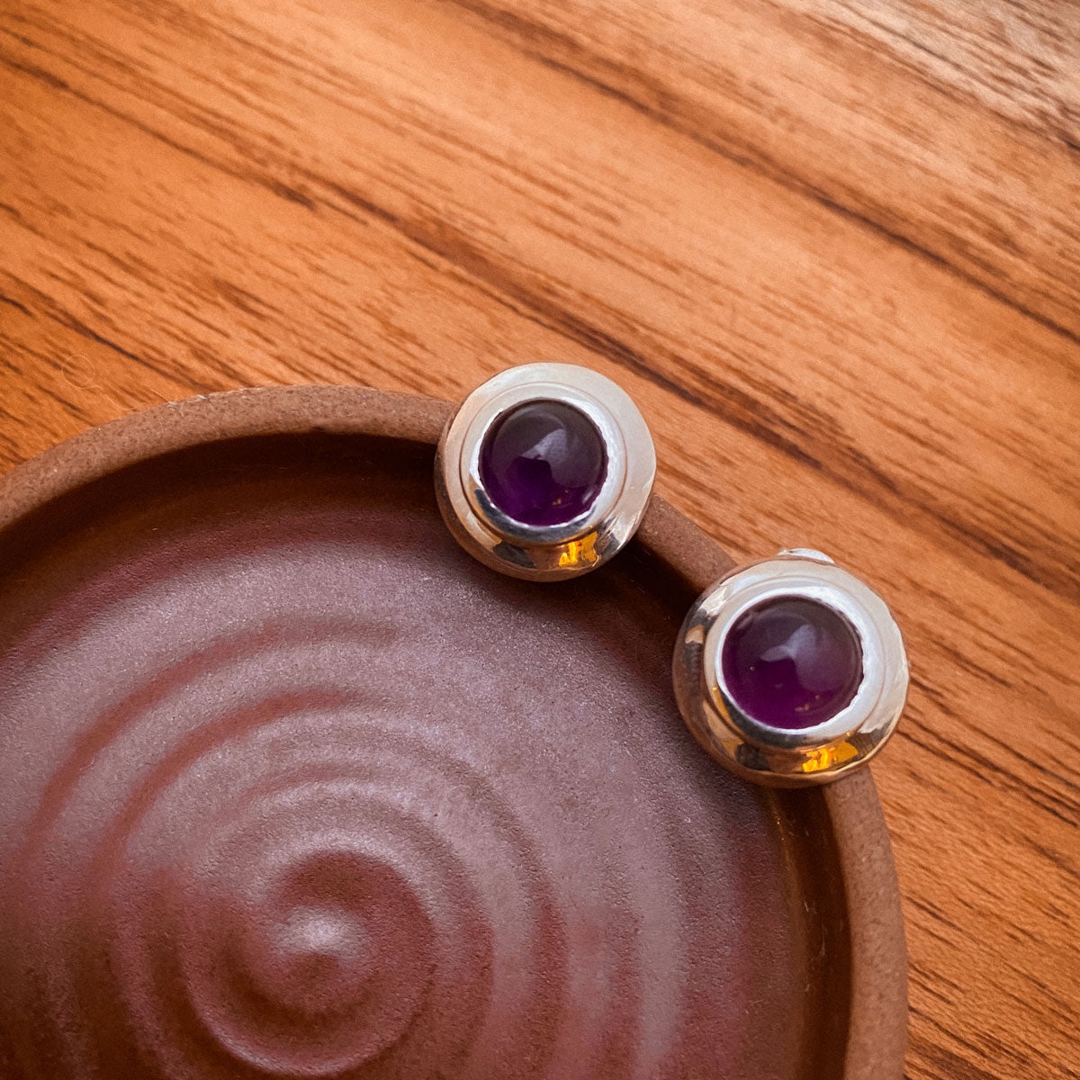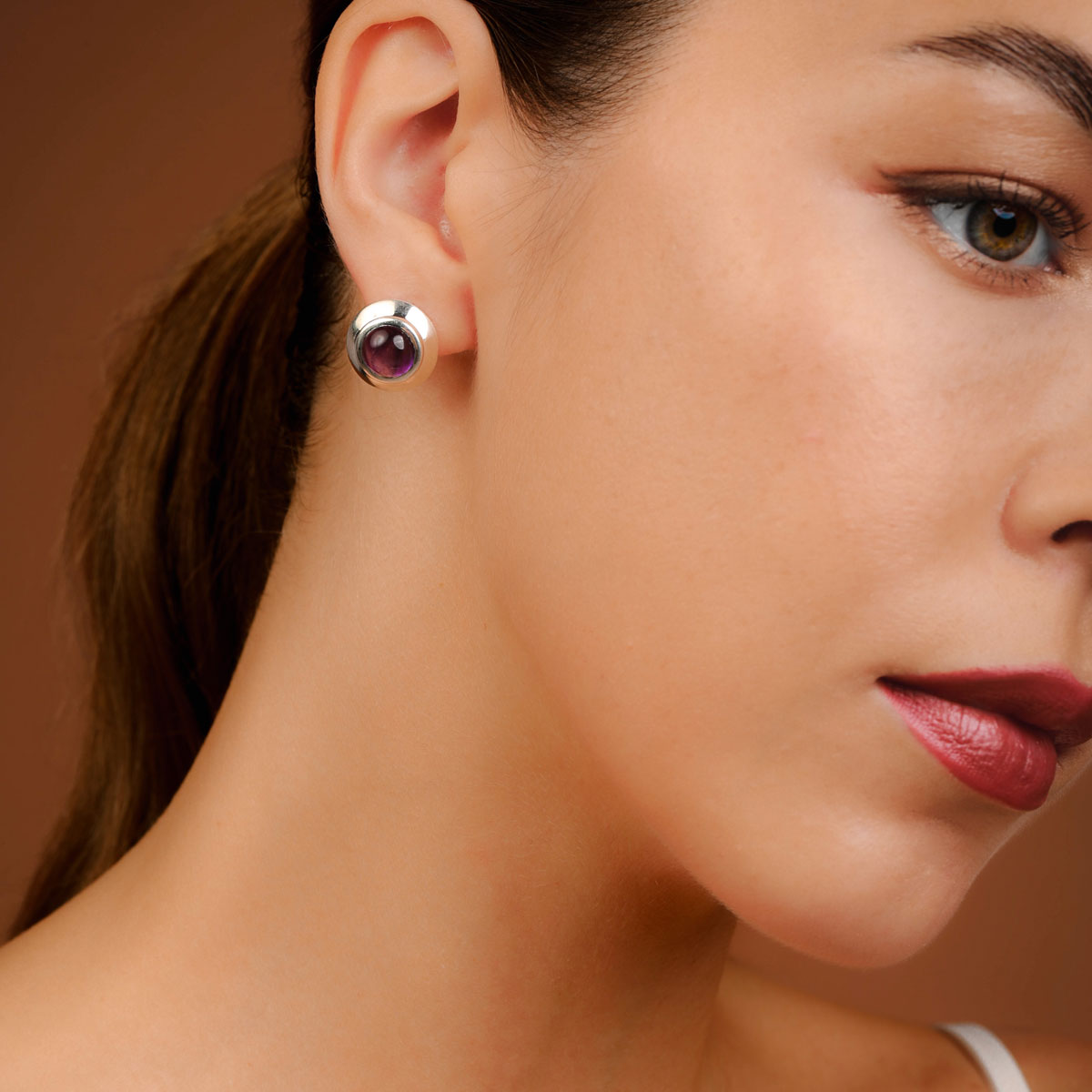 Simple, bold and straightforward, these fun Amethyst spaceship stud earrings are a great everyday accessory. With the sophisticated sheen of highly polished Sterling silver, these make for a great wear anytime.