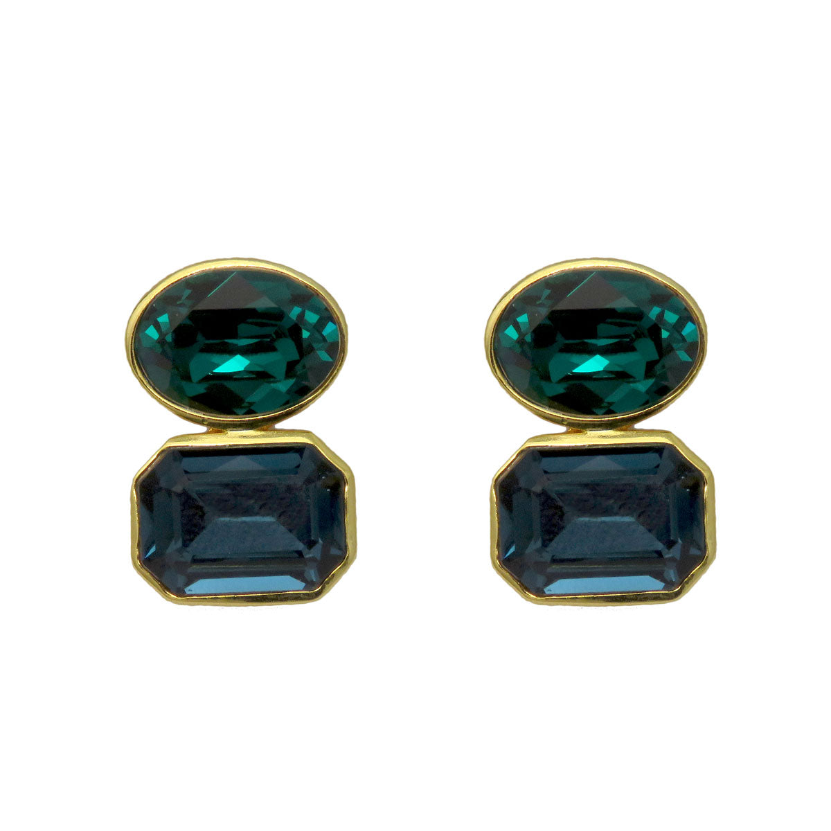 Blue Colour Block earrings: Modern architectural classics that are great for workwear or parties. Simple and cool, with deep tones of beautiful emerald green matched with a deep montana navy blue.