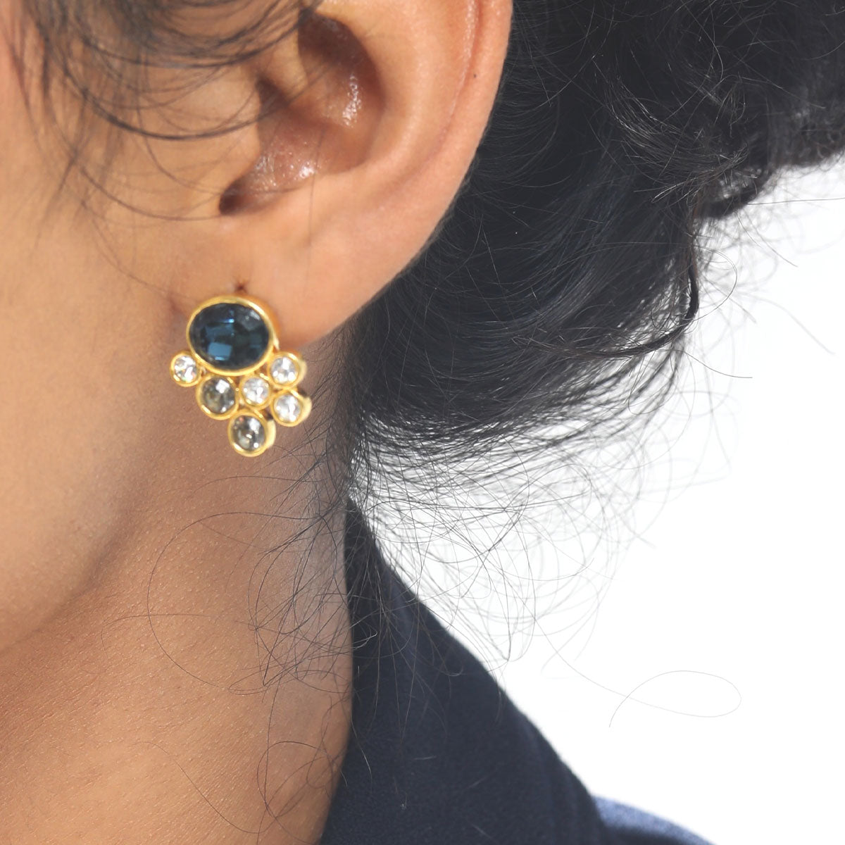 Seafoam Minis: A daily dose of fun, these cool playful studs are a perfect daily earring. In midnight blue, grey and white crystals.