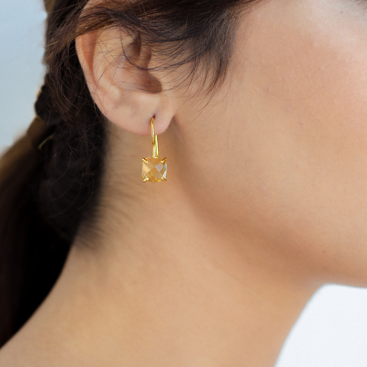 Delicate Citrine earrings in a beautiful mellow yellow. Classic style earrings that drop just below the earlobe, lending a feminine charm. These are easy to wear and match outfits with.