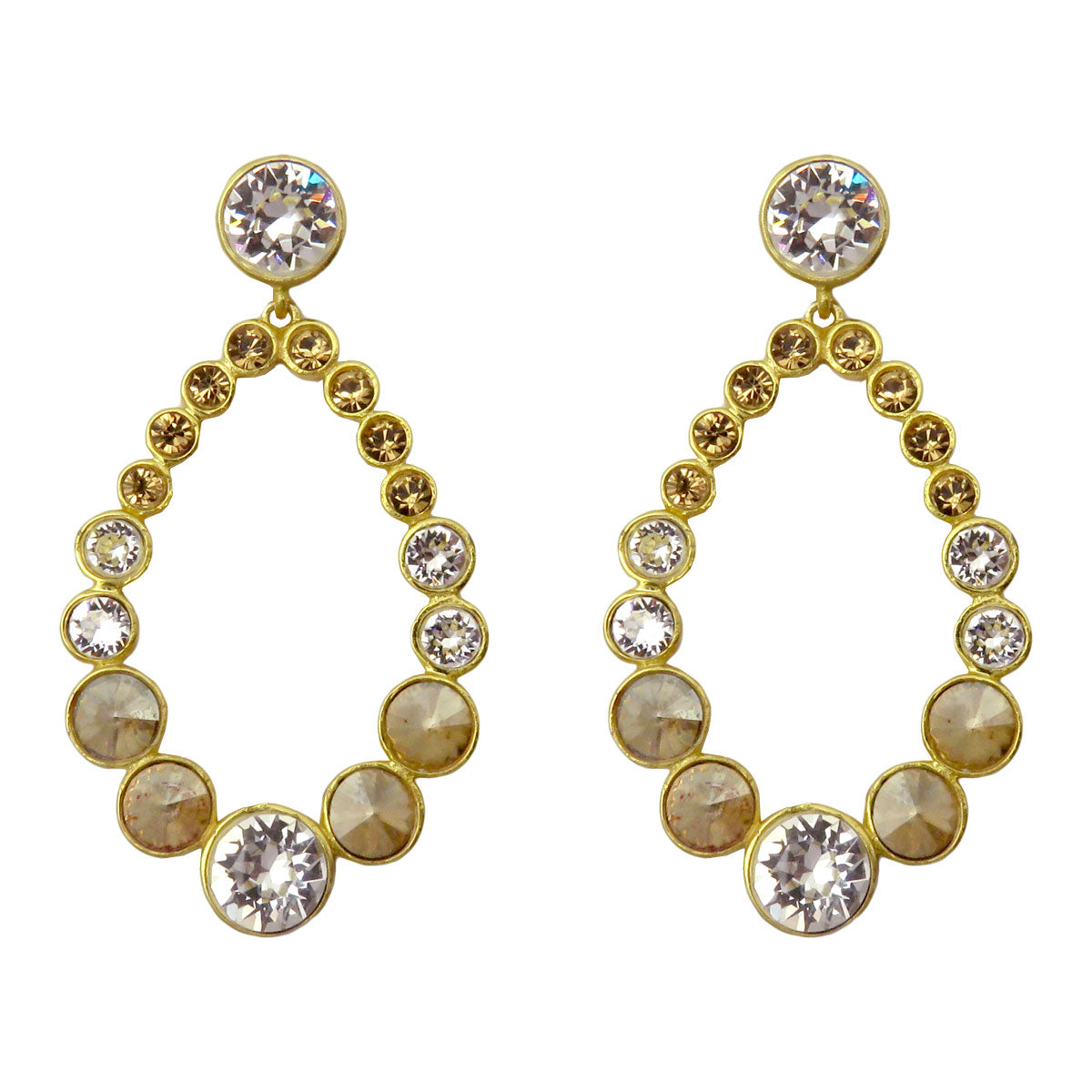 Dazzling crystal drop loops in neutral metallic tones. Add a splash of glamour to your look with these large statement earrings. Flatters all face types and has a dazzling shine.
