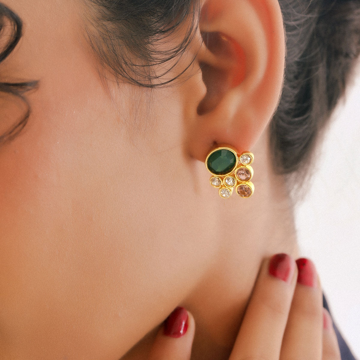 Seafoam Minis: A daily dose of fun, these cool playful studs are a perfect daily earring. In emerald green, light pink and white crystals.