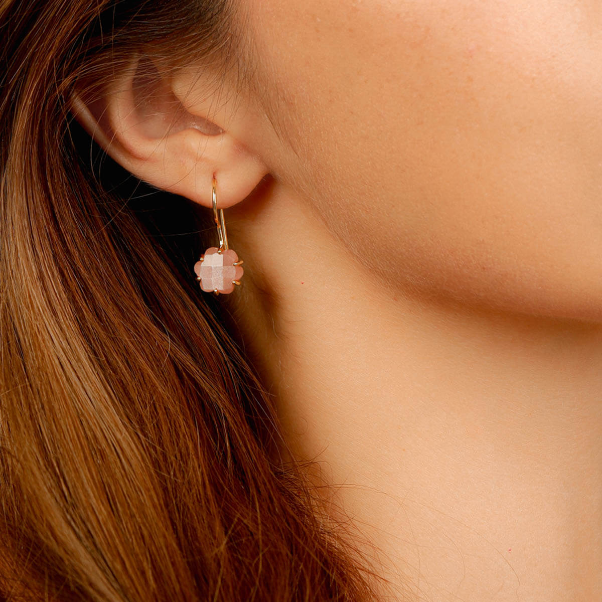 Peach Moonstone, 2 micron thick 18k gold plating on Sterling Silver Base.