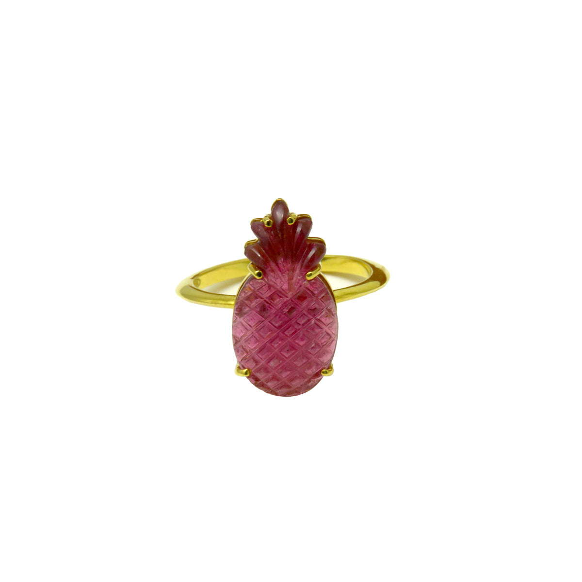 A beautiful and absolutely unique hand-carved Tourmaline ring carved in the form of a pineapple. Quirky, eclectic and with a rich red tourmaline. Wear as a perfect eye-grabbing pop on your fingers. Size as mentioned, email for customised sizes.