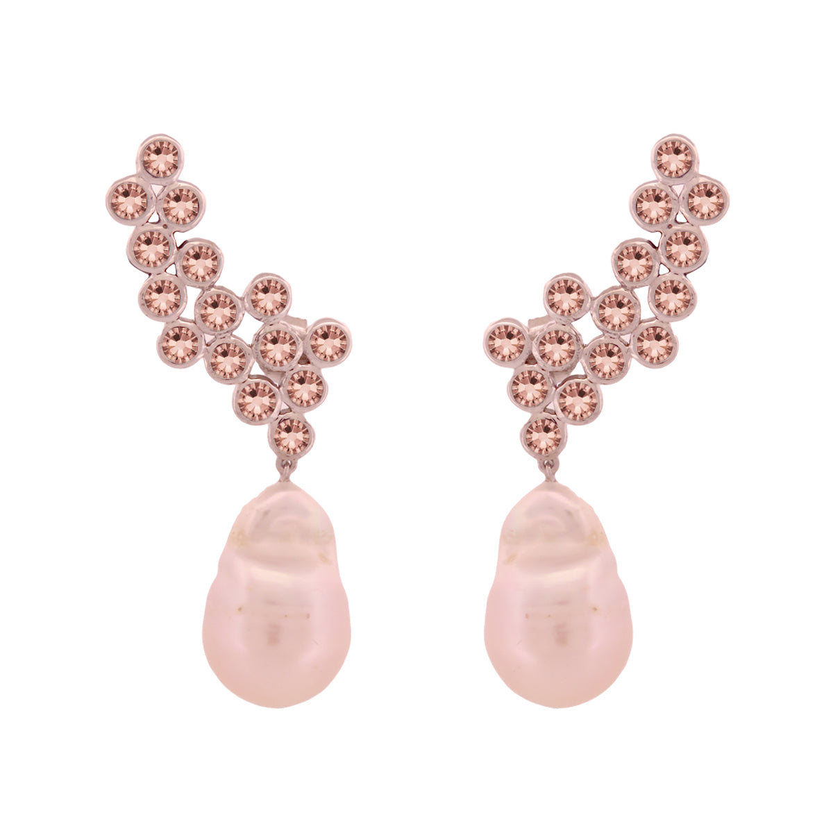 Pink pearl earcuff: this is a earring that sits comfortably along the ear like a earcuff. With elegant blush pink crystals and a natural baroque pearl drop, these are a timeless classic, always in style