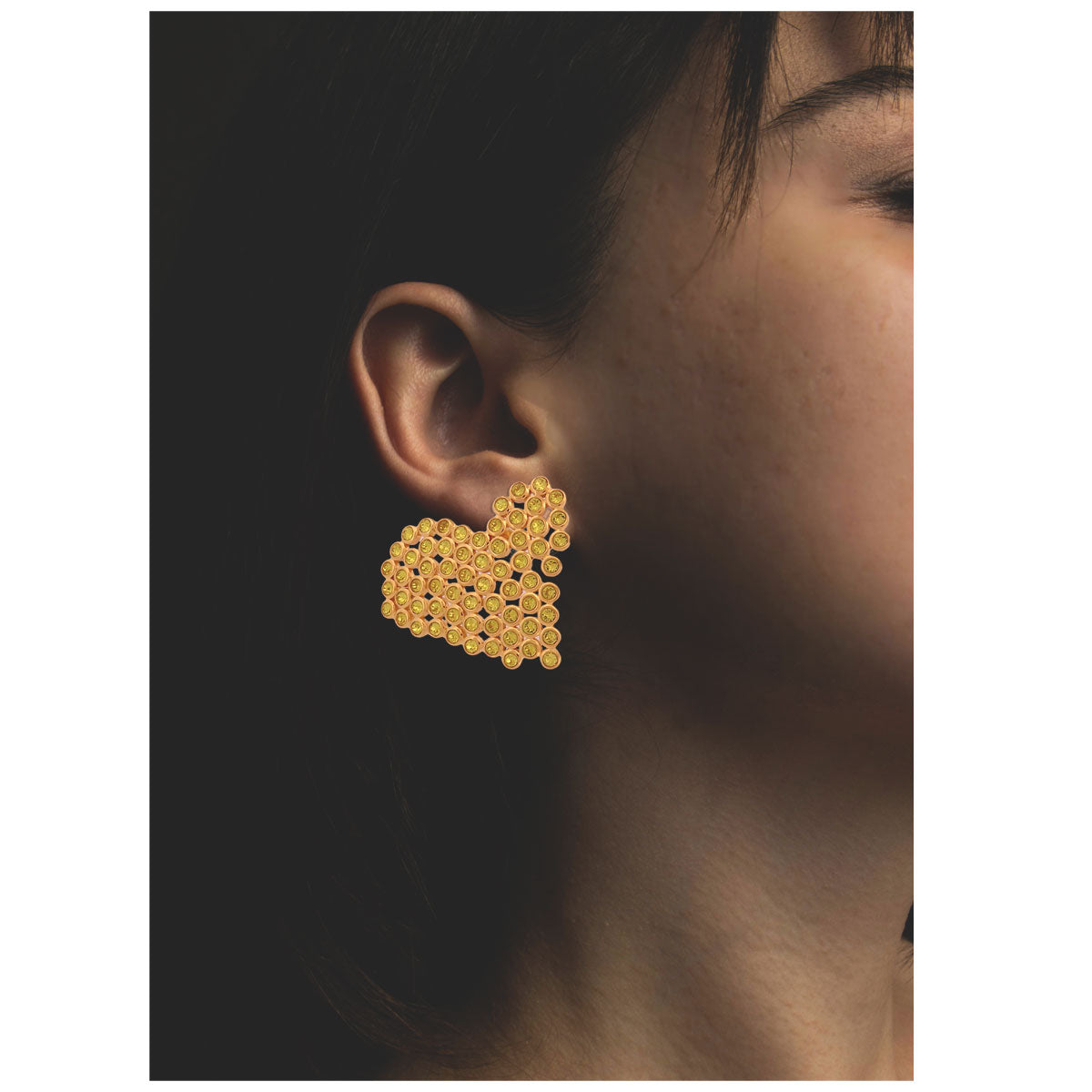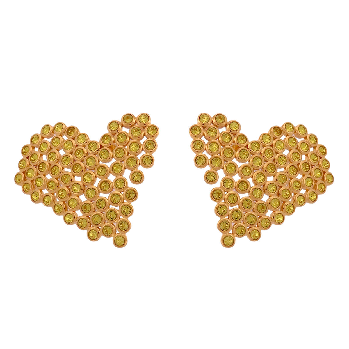 Seafoam heart Studs: XL Stud earrings in a fun heart shape and bright lime green colour crystals . Gold plated on 925 Sterling Silver.