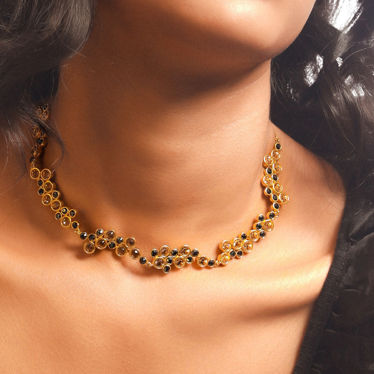 Seafoam Wave Necklace: An elegant and fun necklace in gunmetal grey and gold crystals. A beautiful delicate necklace.
