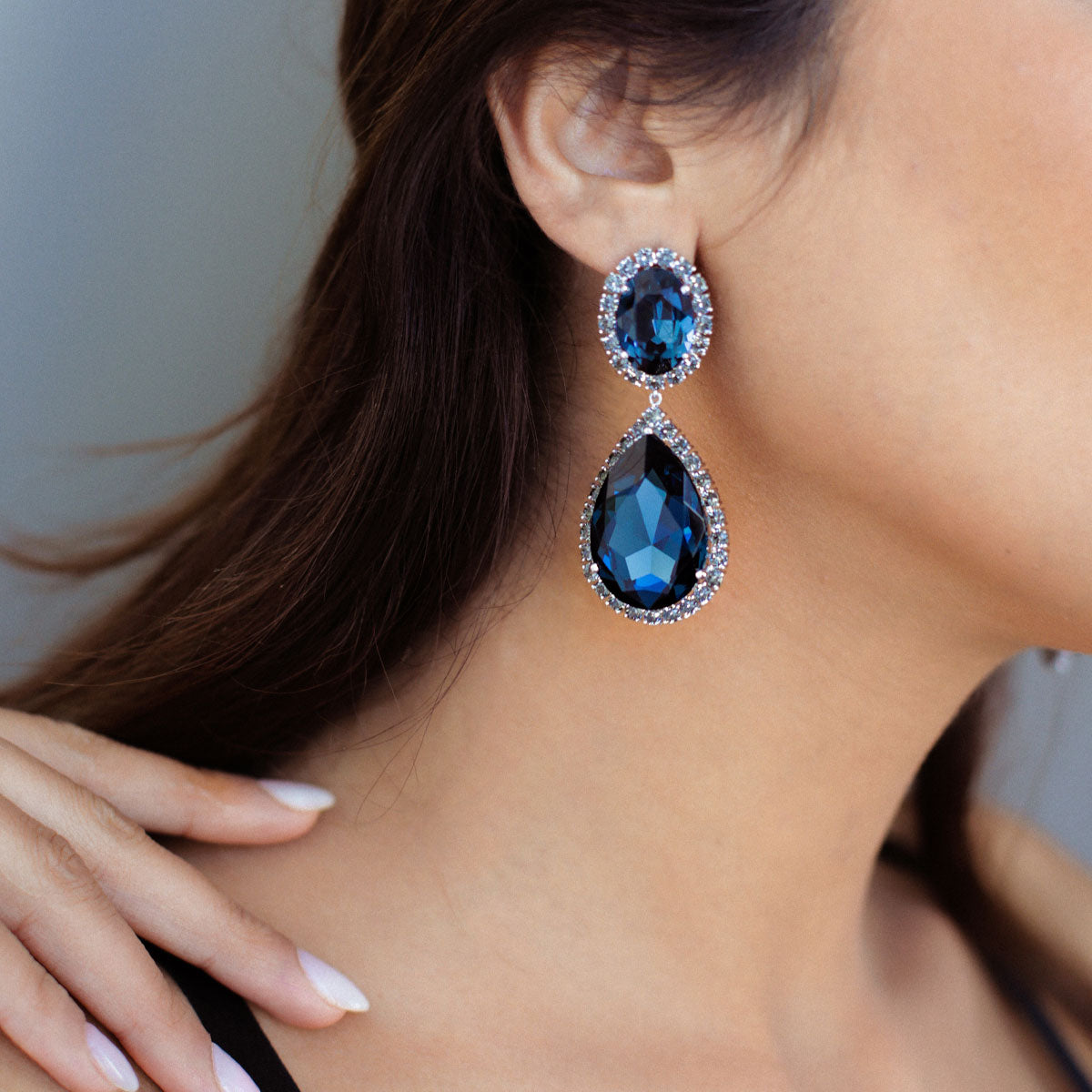 Silver midnight drop earrings are our signature classics that are designed and finely crafted to last through the decades. Made of 92.5 Sterling Silver, these deep blue beauties are a stunning statement piece that's perfect for glamorous evenings.