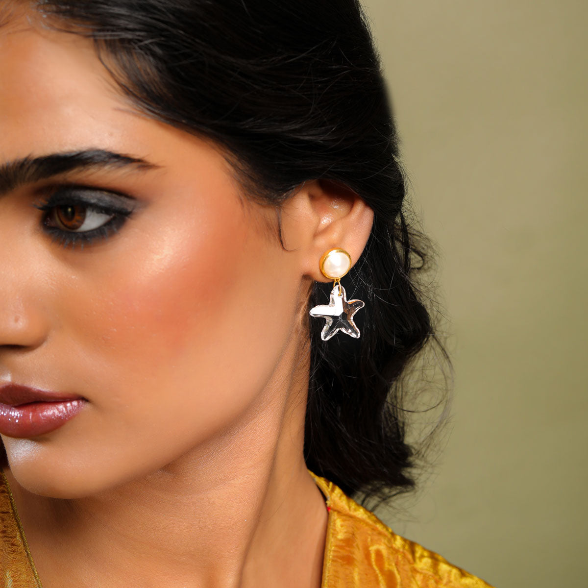 Starfish earrings. Fun and wearable earrings in 18k gold plated sterling silver and dazzling crystals.